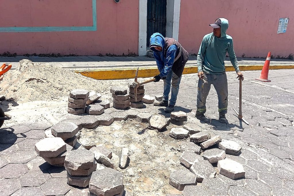 Los trabajos se realizan con brigadas de personal que trabajan en más territorio y menos escritorio y que mejoran las calles: Tlahuicole, Calzada de los Misterios y Gustavo Díaz Ordaz en esquina con calle Hidalgo, que son algunas de las más transitadas de la comunidad.
