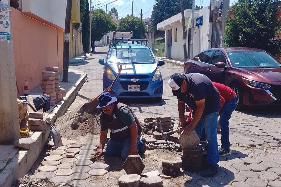 Además, se realizaron trabajos de bacheo en la calle 13 de La Loma Xicohténcatl para mejorar las condiciones de tránsito en la zona. Como parte de las labores de mantenimiento urbano, en Ocotlán se efectuó una faena integral en la calle De la Cruz, en el barrio de Tlacomulco.